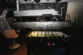 A band of space cadets came together in 2000 to form what is now known as the The Phenomenauts. This intergalactic band of pioneers led by Commanders Angel Nova and Joe Bot, are a blend rockabilly, punk, and good old-fashioned rock‘n’roll. This this quintet has quickly become well known and loved by all who have witnessed their amazing shows. Their space adventures are made possible by the use of their space ship called "The Phenomabomber Beta" seen here parked in dry dock.